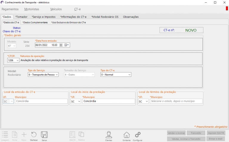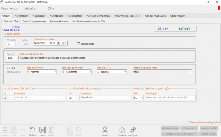 - Preenchimento automático do remetente e destinatário quando informado o XML