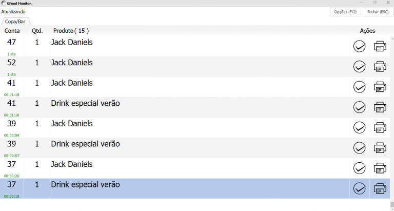 Impressão por ambientes, separada por grupo de produtos. Com o Gfood é possível efetuar o lançamento rápido de produtos favoritos e ainda utilizar uma lista de adicionais para compor o pedido do cliente.
