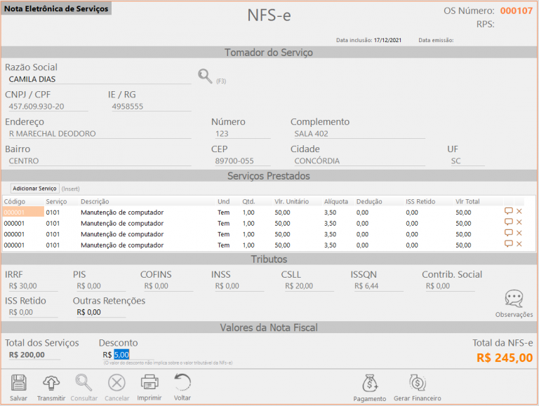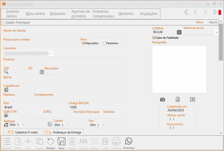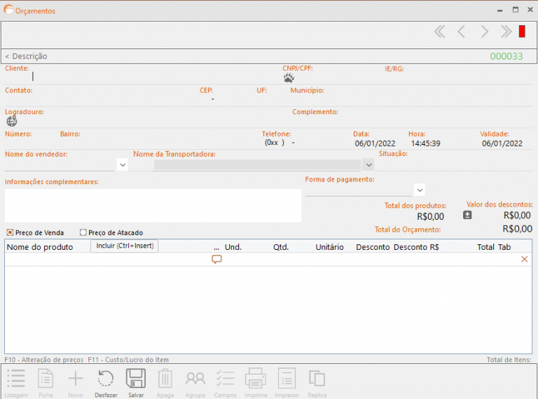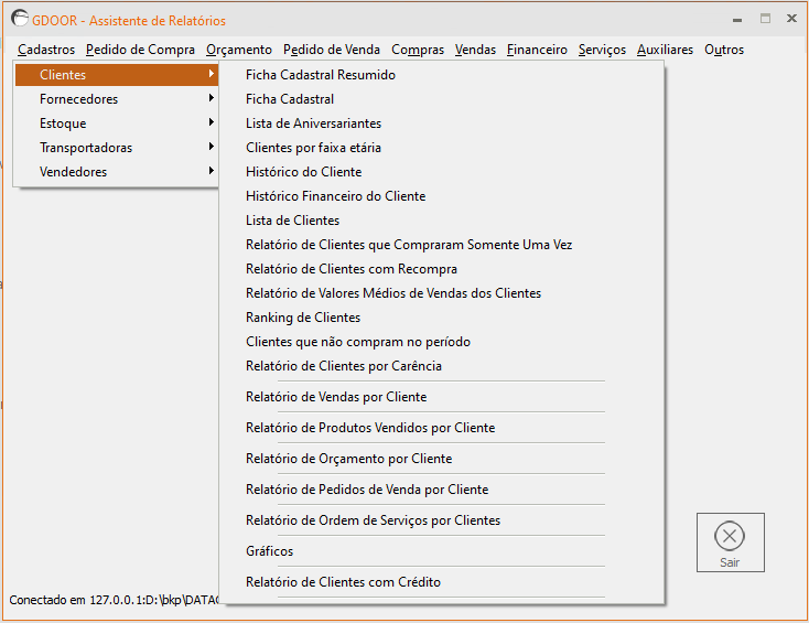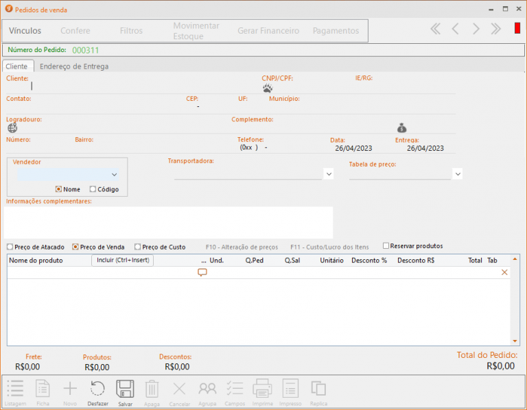 - Cadastro de clientes, fornecedores, transportadoras e vendedores